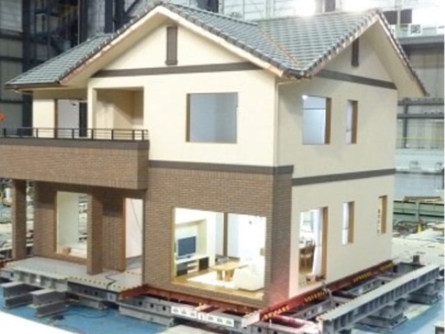 2016 年熊本地震では、2000 年の建築基準法改正前の木造住宅や、それ以降の建築基準法を満たしていても余力の少ない木造住宅では構造的に持ちこたえられないケースがあることが判明しました。将来懸念される南海トラフ巨大地震や首都直下型地震では、地震動の強さ、継続時間、余震発生回数共に熊本地震を上回ることが想定されており、甚大な建物被害が発生する可能性があります。以上のことを背景として、1) 既存建物の耐震性能評価と現実的な耐震補強方法の検討、補強効果の検証、2) 想定を超えた巨大地震に対する免震建物の限界状態の把握を目的としたE-ディフェンス実験を実施しました。また、3) 積雪を考慮したソーラーカーポート(工作物)の耐震性評価も行っています。試験体には、国内で観測された震度6強~7クラスの地震動を複数回入力して、木造住宅や工作物の損傷過程に関する詳細なデータを収集しました。